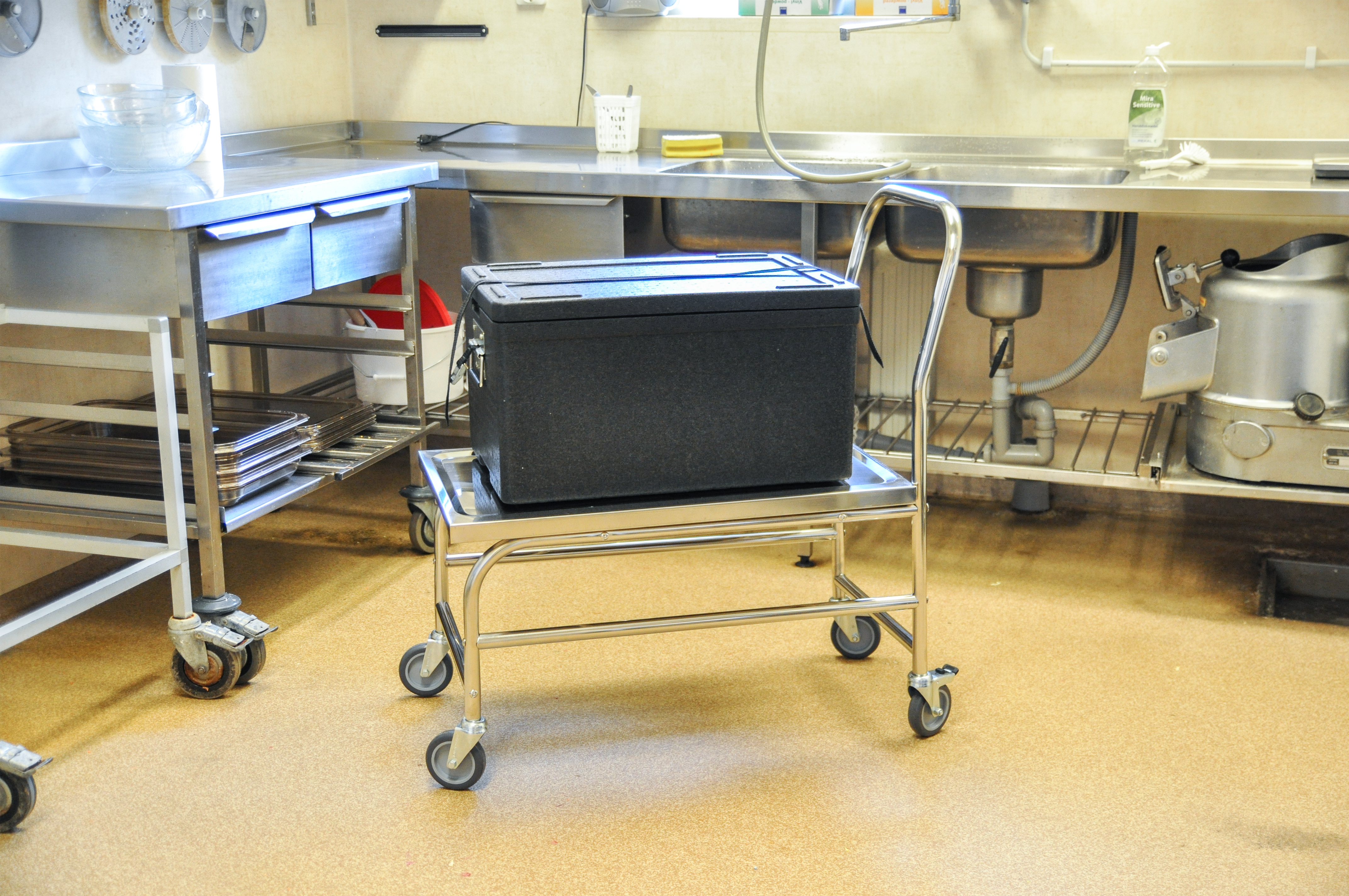 Kätevä ruostumaton lavavaunu, jolla on monia käyttökohteita.